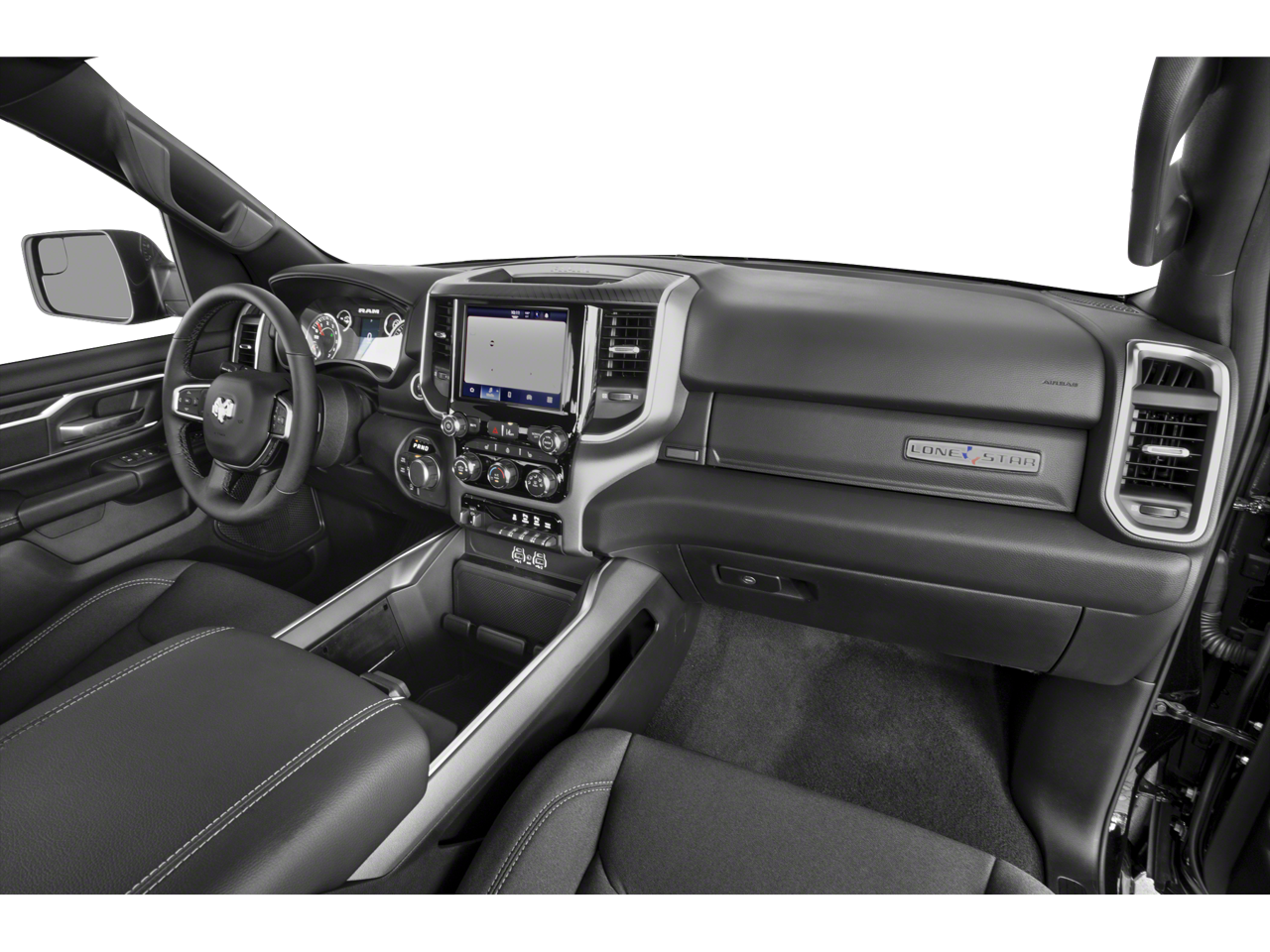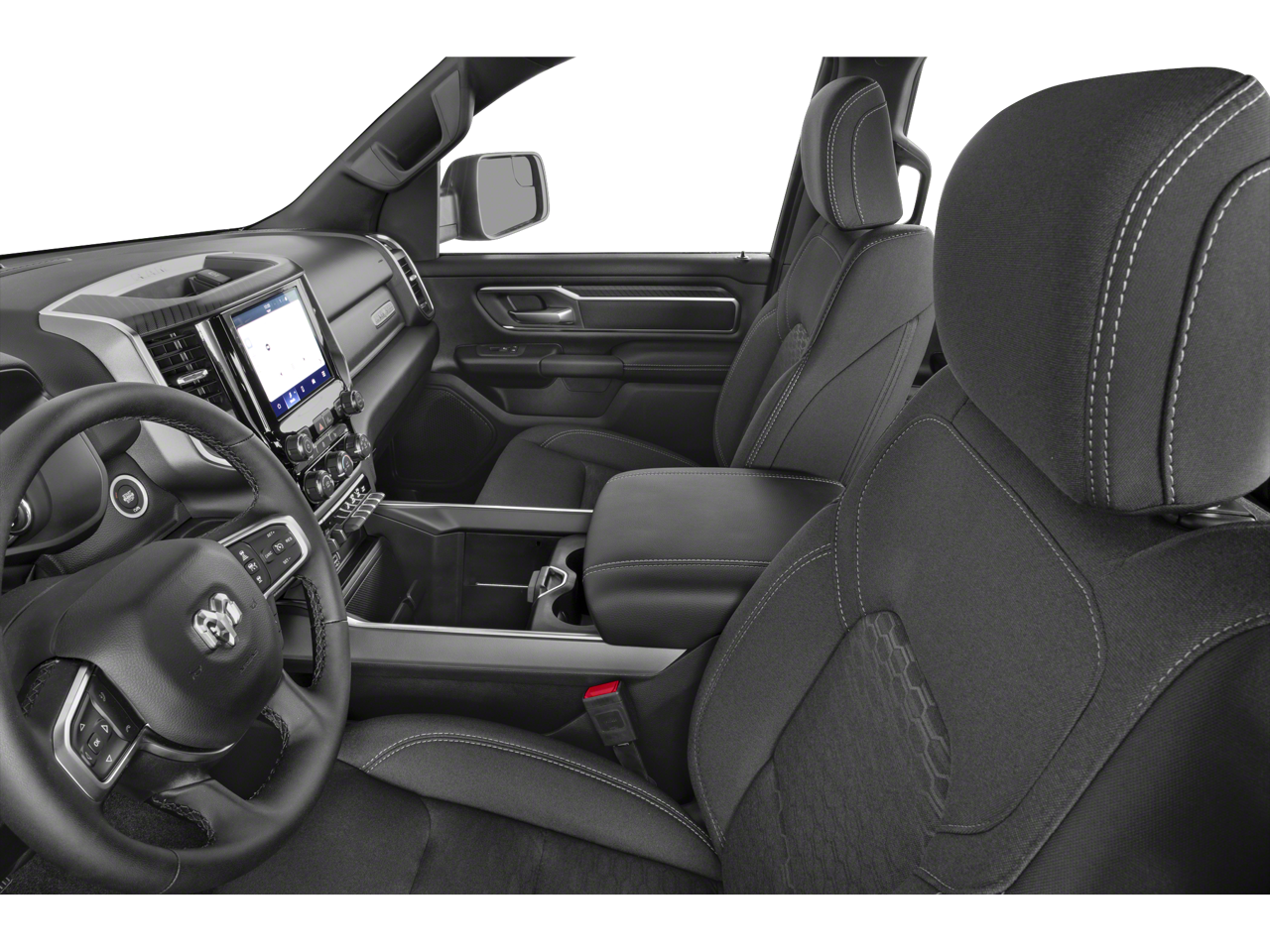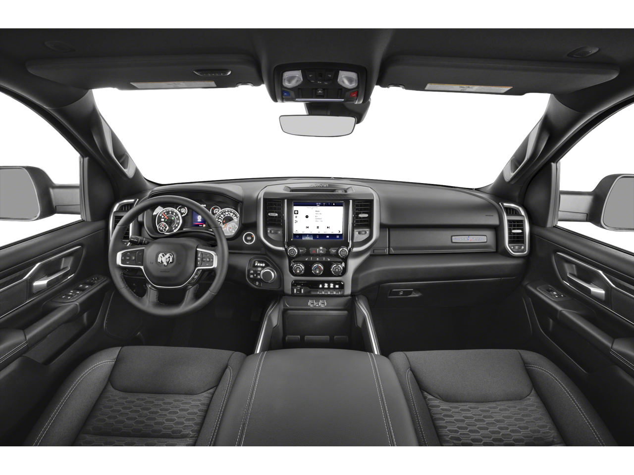 Quick Order Package 21Z Big Horn. Big Horn Level 2 Equipment Group: Google Android Auto; USB Host Flip; Power Adjustable Pedals; Leather Wrapped Steering Wheel; Integrated Voice Command with Bluetooth®; 12" Touchscreen Display; Glove Box Lamp; Auto Power-Folding Mirrors; 115V Auxiliary Rear Power Outlet; Media Hub with 2 Charge Only USBs; Heated Front Seats; Security Alarm; Black Premium Power Mirrors; Apple CarPlay; Premium Overhead Console; 9 Amplified Speakers with Subwoofer; Wireless Charging Pad; Remote Tailgate Release; 115V Auxiliary Power Outlet; LED Dome Lamp with On/off Switch; Universal Garage Door Opener; 2nd Row in Floor Storage Bins; Sun Visors with Illuminated Vanity Mirrors; LED Footwell Lighting; Power 2-Way Driver Lumbar Adjust; Rear Window Defroster; Rear View Auto Dim Mirror; Rear Power Sliding Window; Connectivity - US/Canada; GPS Navigation; 4G LTE Wi-Fi Hot Spot; GPS Antenna Input; Overhead LED Lamps; Exterior Mirrors with Heating Element; Auto Dim Exterior Driver Mirror; SiriusXM with 360L; Connected Travel and Traffic Services; Heated Steering Wheel; Black Exterior Mirrors; Configurable Drive Mode; 400W Inverter; HD Radio; Uconnect 5 Navigation with 12.0" Display Radio; Exterior Mirrors with Supplemental Signals; Steering Wheel Mounted Audio Controls; Exterior Mirrors Courtesy Lamps; Air Conditioning ATC with Dual Zone Control; Cluster 7.0" TFT Color Display; Power Adjust 8-Way Driver Seat; Convex Wide-Angle Exterior Mirror Insert. Quick Order Package 23Z Big Horn: Big Horn Badge. 9 Amplified Speakers with Subwoofer. Deluxe Cloth Bucket Seats. 3.55 Rear Axle Ratio. **Equipment listed is based on original vehicle build and subject to change. Please confirm the accuracy of the included equipment by calling the dealer prior to purchase.**